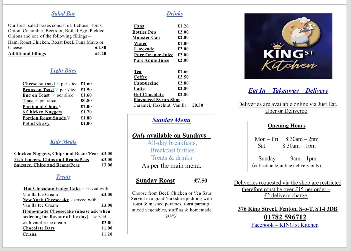 King Street Kitchen, located at 376 King St, Stoke-on-Trent, is a cozy eatery offering a delightful mix of modern and traditional British dishes. With its inviting atmosphere and friendly service, it quickly establishes itself as a local favorite. The menu features a diverse range of options, making it a great choice for breakfast, lunch, or dinner.