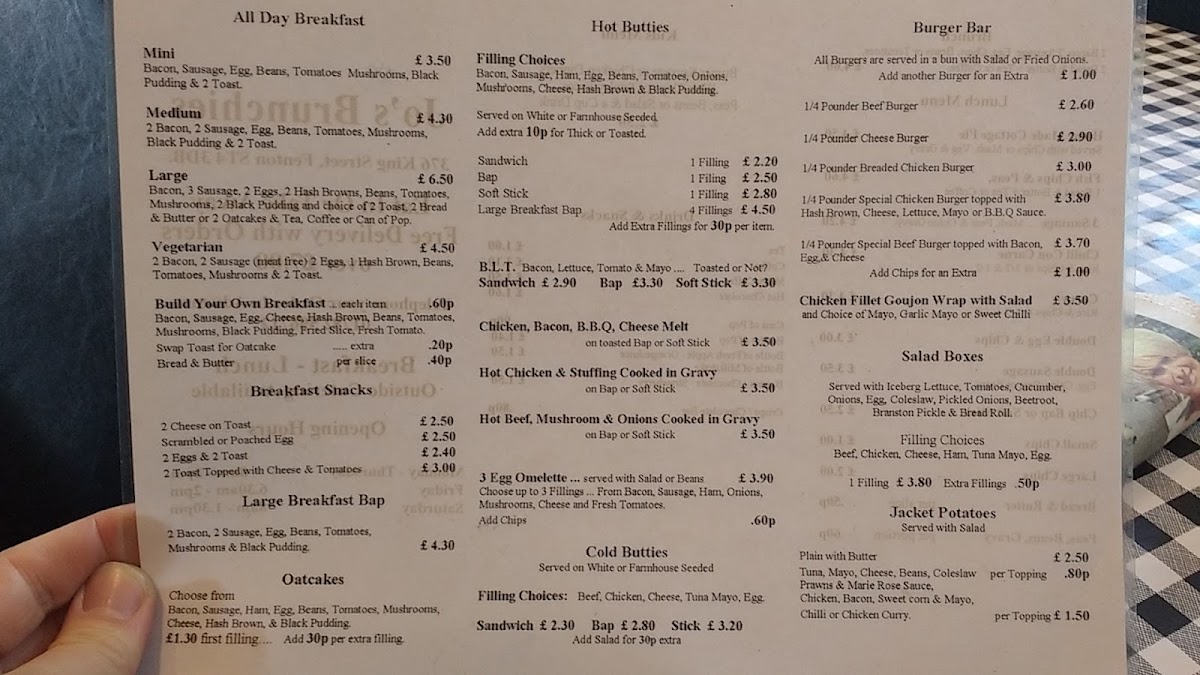 2 Bacon, 1 Sausage, 1 Hash Brown, 1 Egg, Beans or Toms, 2 Toast